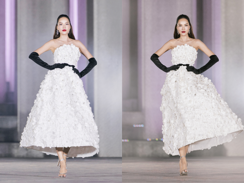Một trong số những bộ sưu tập (BST) để lại nhiều dấu ấn tại sự kiện là BST “LUMIÈRE” của C’CHIC. BST được xây dựng như một “giao hưởng ánh sáng”, nơi thời trang trở thành phương tiện khắc họa hình ảnh người phụ nữ hiện đại: tỏa sáng từ trí tuệ và khí chất, mạnh mẽ nhưng vẫn giữ trọn sự mềm mại, tinh tế.BST được lấy cảm hứng từ thần thoại Hy Lạp, hòa quyện cùng khí chất cuốn hút của những biểu tượng nữ trên màn ảnh kinh điển. Mở màn là bộ ba Á hậu: Thu Ngân, Thu Trà và Y Quyên, đại diện cho những sắc thái khác nhau của hình tượng “nữ thần ánh sáng”.Khép lại show diễn, Vedette Hoa hậu Lê Hoàng Phương xuất hiện với thần thái kiêu hãnh, khả năng làm chủ sân khấu và phong độ trình diễn ổn định, tạo nên khoảnh khắc thăng hoa trọn vẹn cho “LUMIÈRE”.Thông điệp “A Symphony of Light. A Whisper of Grace” được truyền tải xuyên suốt, nhấn mạnh vẻ đẹp không ồn ào nhưng bền bỉ, không phô trương mà đầy nội lực.Về kỹ thuật và chất liệu, các chi tiết lông vũ, đính đá, hoa 3D thủ công được xử lý tỉ mỉ trên nền phom dáng hiện đại. Bảng màu chủ đạo trắng – đen – be giúp tôn vinh cấu trúc trang phục, đồng thời giữ được tinh thần tối giản, sang trọng theo xu hướng Quiet Luxury và Modern Goddess đang thịnh hành trên các sàn diễn quốc tế.Thông qua “LUMIÈRE”, thương hiệu tiếp tục khẳng định chân dung khách hàng mục tiêu là những người phụ nữ theo đuổi sự thanh lịch nhưng không hòa lẫn, xem thời trang như cách thể hiện bản lĩnh, cá tính và dấu ấn riêng. BST đồng thời là công cụ quan trọng trong chiến lược định vị thương hiệu theo hướng thời trang nữ cao cấp, tinh tế và khác biệt.