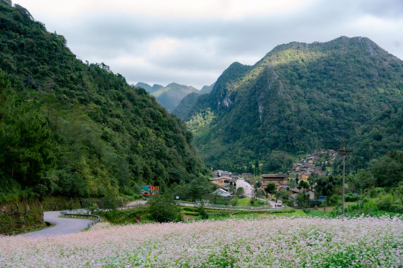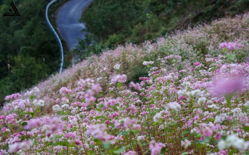 Mùa này, tam giác mạch nở rộ khắp nơi, trải dọc Cung đường Hạnh Phúc (con đường huyền thoại nối liền Quản Bạ, Yên Minh, Đồng Văn, Mèo Vạc). Đây có thể xem là cung đường kỳ vĩ nhất Việt Nam, đi qua các địa danh du lịch nổi tiếng như đèo Mã Pì Lèng, dốc Bắc Sum, dốc Thẩm Mã, cổng trời Quản Bạ, Vách đá trắng… Con đường quanh co ấy không chỉ nối liền những miền đất, mà còn kết nối cảm xúc của người lữ khách với vẻ đẹp hùng vĩ của cao nguyên đá. Mỗi đoạn đường, mỗi khúc cua lại mở ra một tầm nhìn mới: những dãy núi ẩn hiện trong sương, thung lũng xanh rì và những cánh đồng hoa tam giác mạch nhẹ nhàng phủ sắc hồng lên triền đồi.