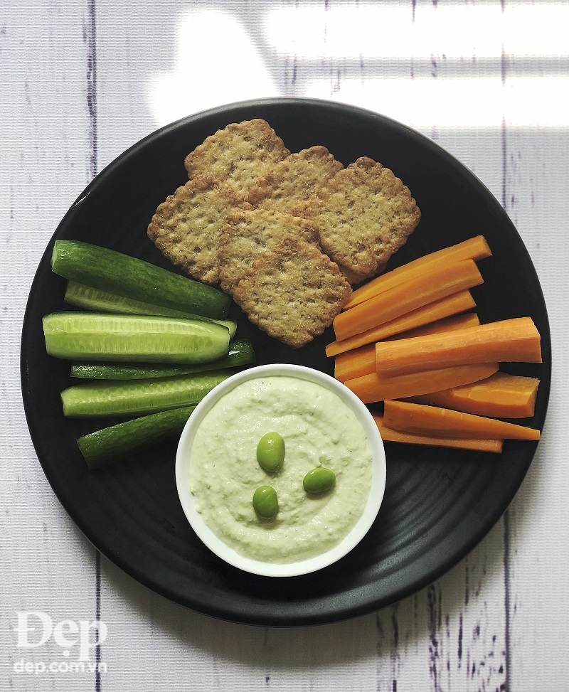 Theo truyền thống, đậu Edamame sau khi luộc sẽ được trộn với một ít muối và tách hạt ăn trực tiếp. Còn theo tôi, sốt Hummus Edamame thực sự là một món ăn vặt giàu dinh dưỡng, ít calo và có thể nhâm nhi suốt cả mấy tập phim dài.
