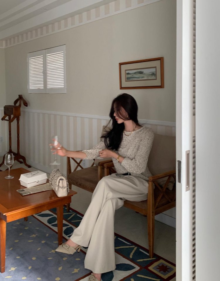 Ưu điểm của áo len mỏng là tạo nên vẻ nữ tính, mềm mại cho người mặc mà vẫn không đánh mất sự thời thượng. Những gam màu trung tính như be, xám, trắng kem hay nâu chocolate càng làm nổi bật nét thanh lịch vốn có. Khi kết hợp cùng quần ống rộng chất liệu dạ, kaki hay linen, tổng thể outfit sẽ toát lên sự nhẹ nhàng nhưng vẫn đầy cuốn hút. Chị em đừng quên sơ vin vạt áo để giúp cân bằng tỷ lệ cơ thể, tạo hiệu ứng chân dài hơn.