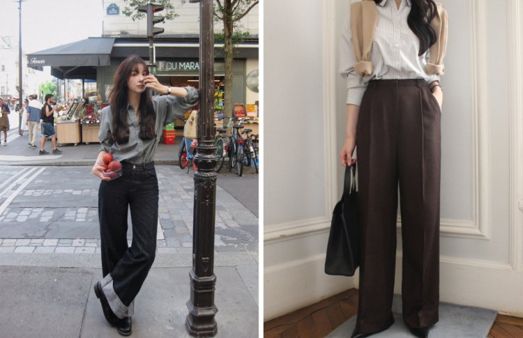 Cặp đôi áo sơ mi + quần ống rộng là lựa chọn hoàn hảo cho dân văn phòng, nhưng cũng cực kỳ linh hoạt trong các buổi cà phê cuối tuần hay những lần xuống phố nhẹ nhàng. Để tránh cảm giác "quá nghiêm túc", bạn có thể tô điểm thêm một chiếc thắt lưng bản to hoặc chọn sơ mi có chi tiết nhấn nhá như tay phồng nhẹ, cổ nơ, hay họa tiết kẻ mảnh. Hãy thử đóng thùng một bên vạt áo để tạo điểm nhấn phá cách, giúp bộ trang phục trông phóng khoáng hơn.