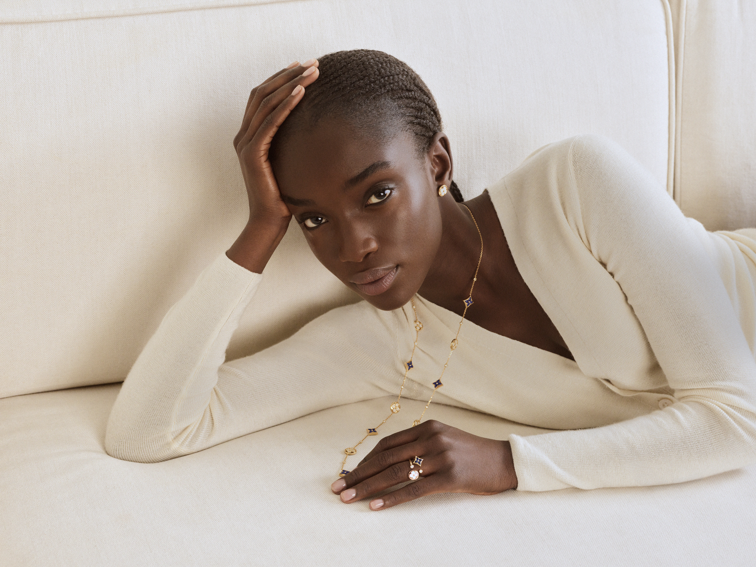 Tiếp tục khai thác đặc trưng về khối lượng và hình dáng của dòng trang sức Color Blossom từng ra mắt vào năm 2015, sắc xanh navy của sodalite trở thành mảnh ghép mới trong bảng màu của bộ sưu tập, bên cạnh xà cừ hồng, onyx, carnelian, malachite và amazonite. Thường được biết với tên gọi “đá muối”, sodalite dường như khiến các đóa hoa Monogram hồi sinh trong không gian ba chiều sau quy trình cắt, đánh bóng và chạm khắc mất thời gian gấp 5 lần so với đánh bóng đá phẳng.